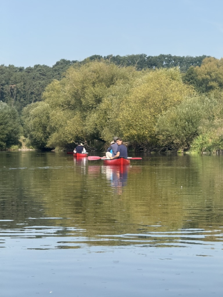 Als Ausgleich zum anspruchsvollen Alltag in der Umschulung zum Fachinformatiker für Anwendungsentwicklung organisieren wir regelmäßig Freizeitaktivitäten. Dieses Mal stand eine Kanutour auf der Fulda auf dem Programm. Die Kanus haben wir bei der Fulle-Marie in Fuldabrück-Bergshausen geliehen.